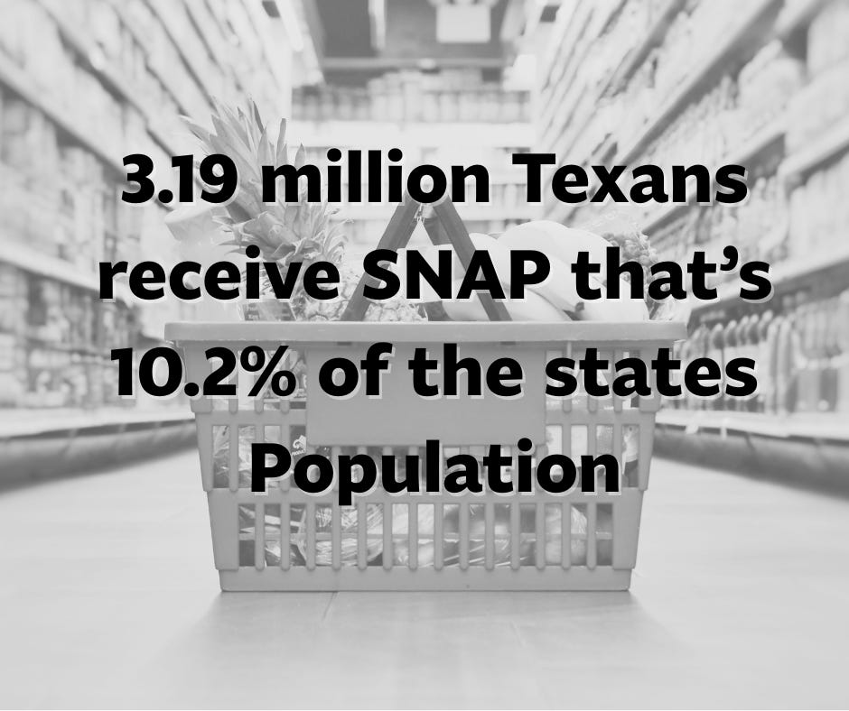 In FY 2024, about 3.19 million Texans, roughly 10.2% of the state’s population, received benefits from the Supplemental Nutrition Assistance Program (SNAP). USAFacts+1