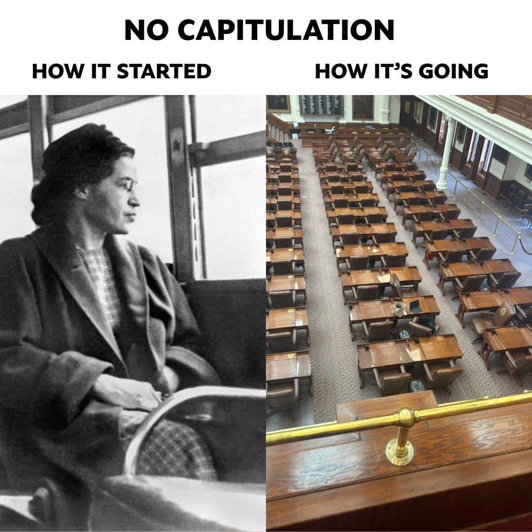 House leadership locked Rep. Nicole Collier in the chamber after she refused to be tailed by a DPS officer for simply doing her job. We hear endless sermons about “freedom and liberty,” yet it evaporates the second you disagree with Texas Republicans. Several legislators remain gone, and tell me, why would anyone return to a chamber that treats elected colleagues like suspects?