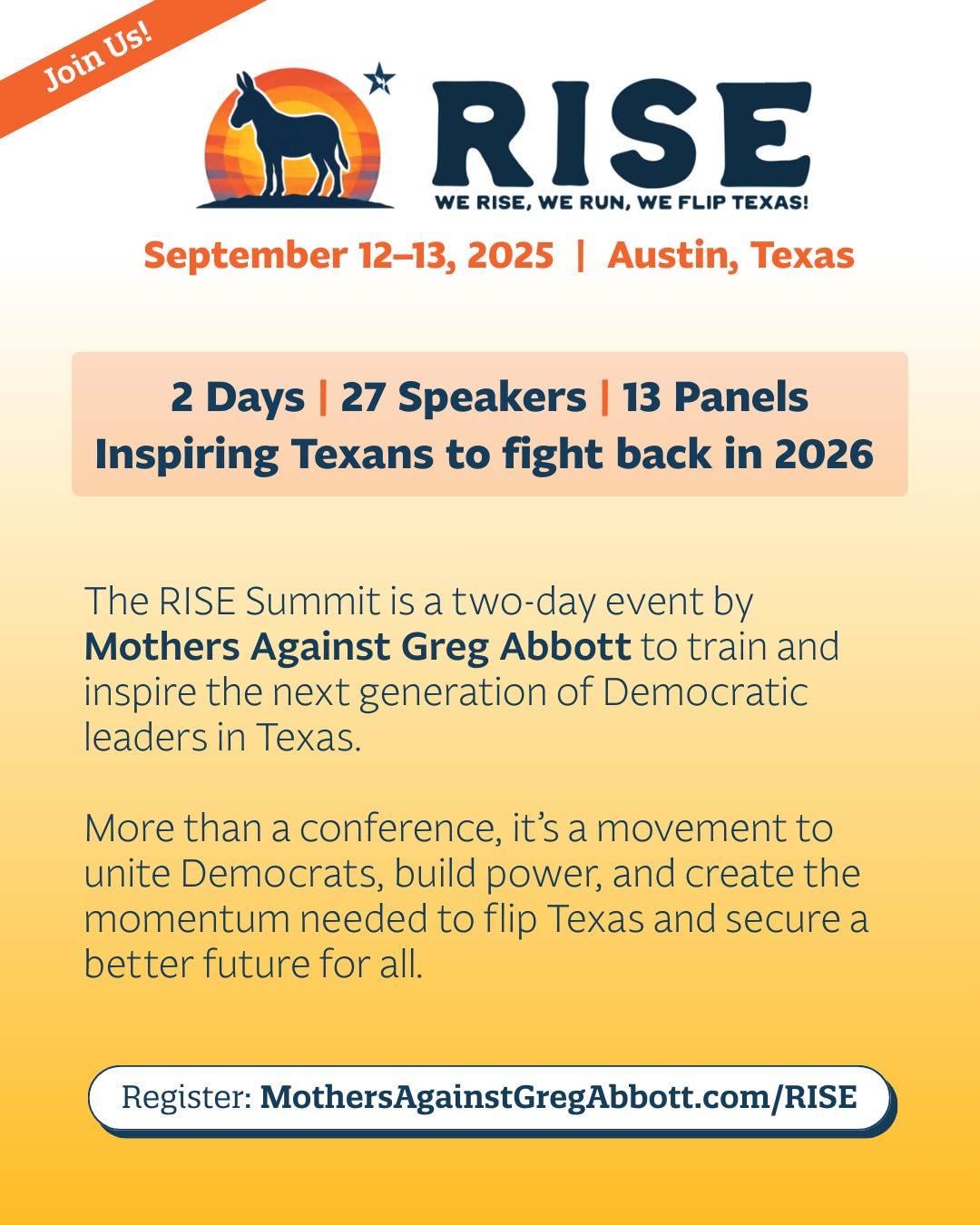 We hope to see you there: https://mothersagainstgregabbott.com/rise/